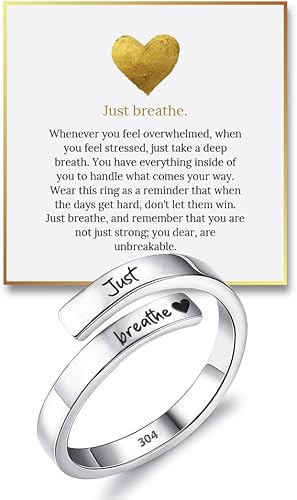 - ADJUSTABLE FIT FOR COMFORT: Our Just Breathe Ring’s flexible design ensures a perfect fit for any finger size. The adjustable nature eliminates the guesswork from gifting, making it a hassle-free present that celebrates resilience and personal growth.